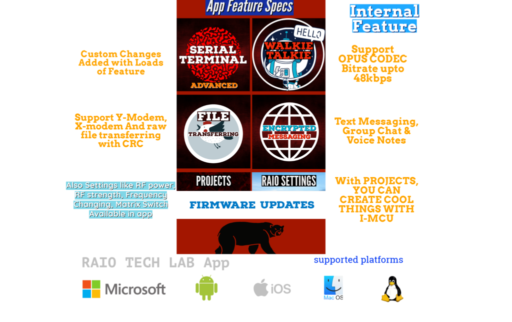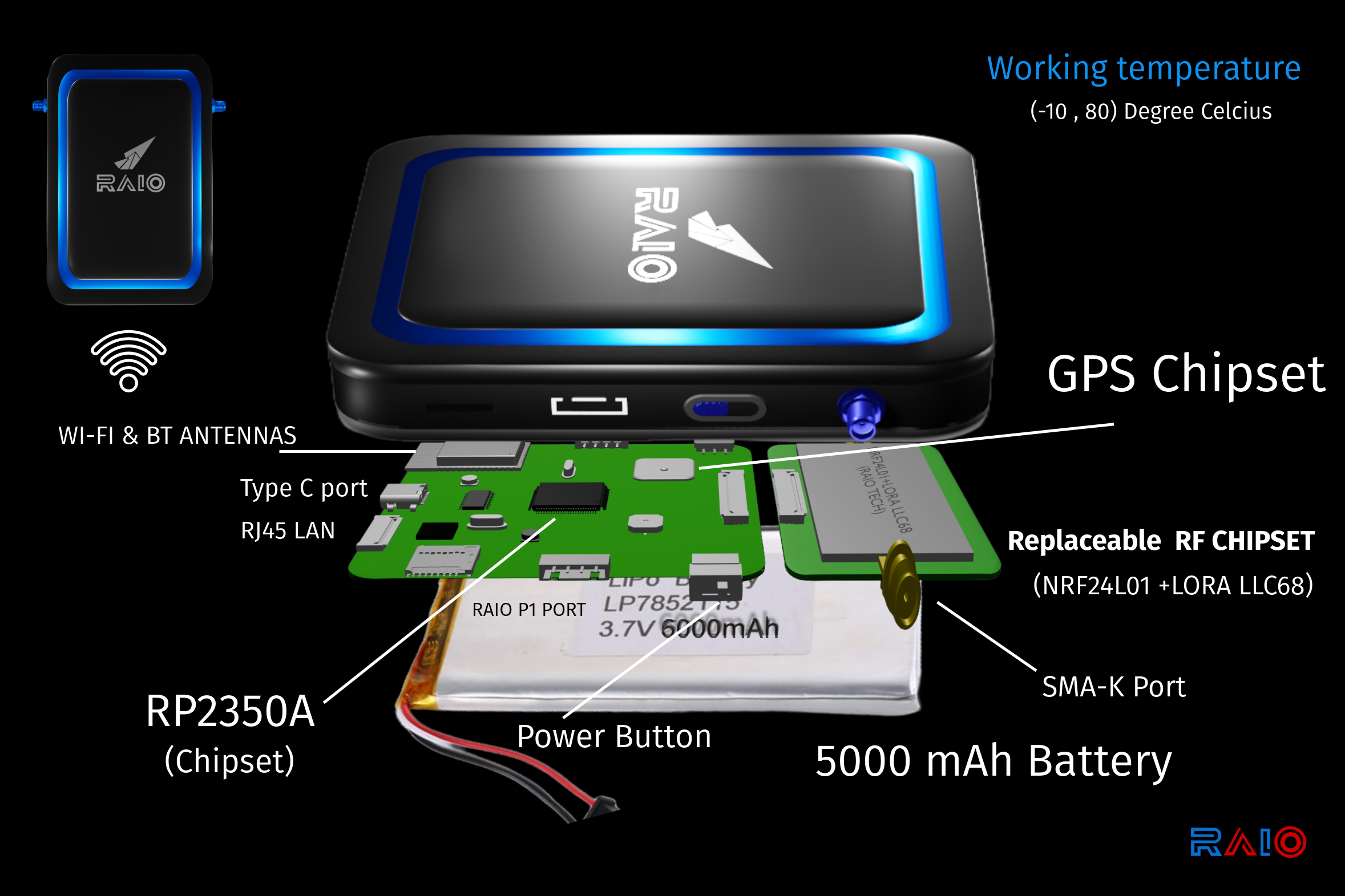 Backed by the in-house Raio Tech Tab application, compatible with major operating systems (Linux, Windows, macOS, Android, iOS), users can leverage features such as walkie-talkie functionality, secure chat, file transfers, and an advanced serial terminal. The app also supports integration with robotics and other long-range projects, providing a project space for microcontroller control.
