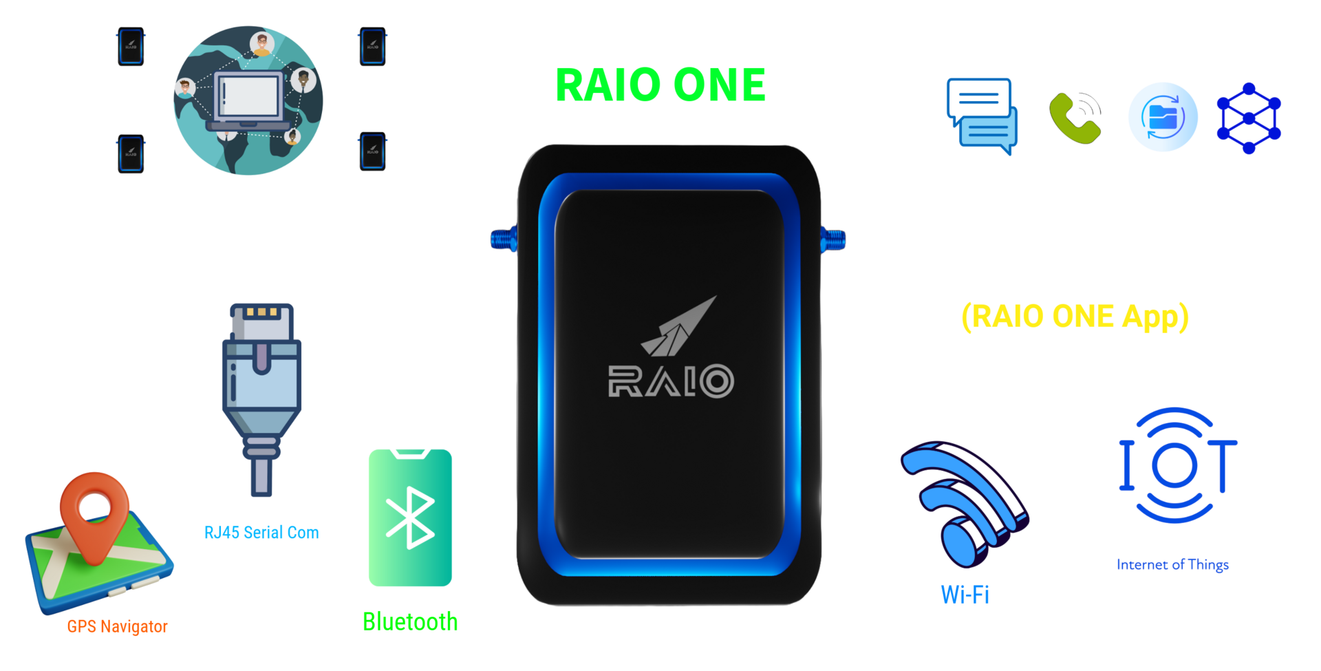 RAIO ONE offers a versatile range of connectivity , enabling seamless interaction with the RAIO ONE app. Connect to your device using USB Type-C, Wi-Fi, or Bluetooth, RJ45 COM to access and control features like file transfers, voice calls, encrypted chats, and many more via RAIO Peripherals and IOT access.
